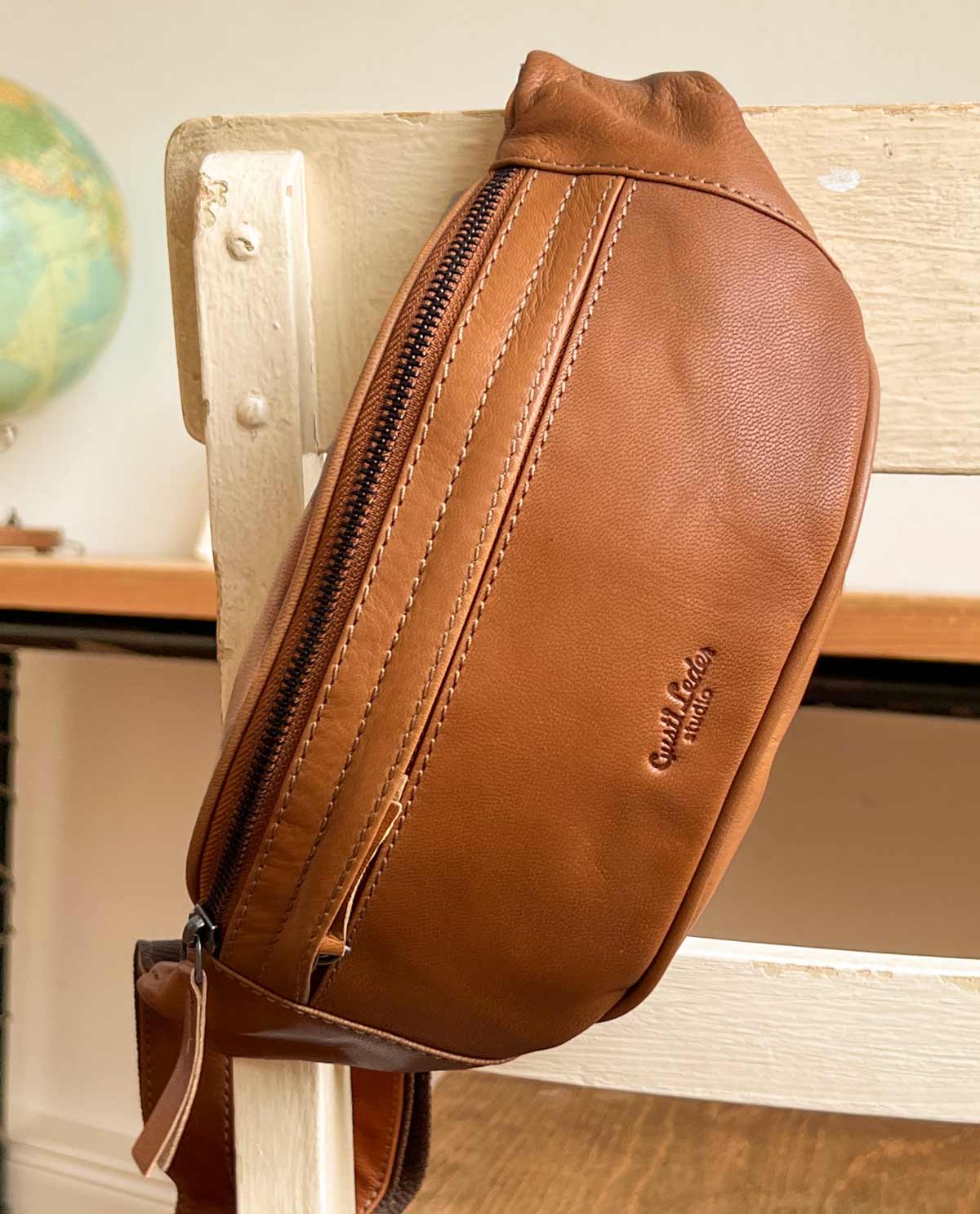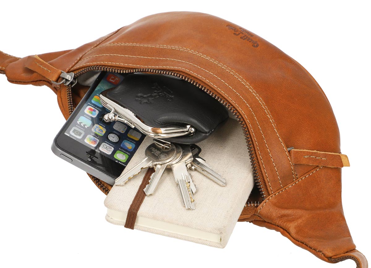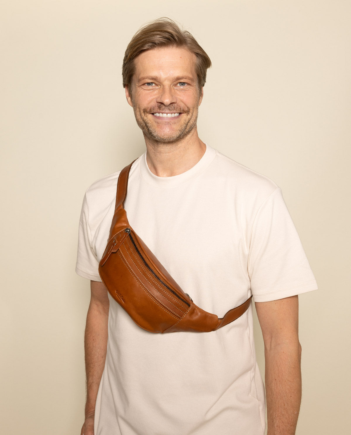 Our simple, no-fuss belt bag “Spencer” will win you over with its minimalist design, quality, and functionality. The high-quality processed goatskin leather means this belt bag is strong and sturdy. It has multiple zipped pockets where you can keep your festival essentials safe. Experienced festival-goers and concert lovers will really appreciate this bag’s robustness. There’s plenty of space for your wallet, phone, keys, and more inside. Adjust this bag to fit you perfectly using the adjustable strap and plastic buckle. Wear “Spencer” over your shoulder or round your waist, whatever suits you. Our motto is: “Spencer” is simple. Practical. Good.