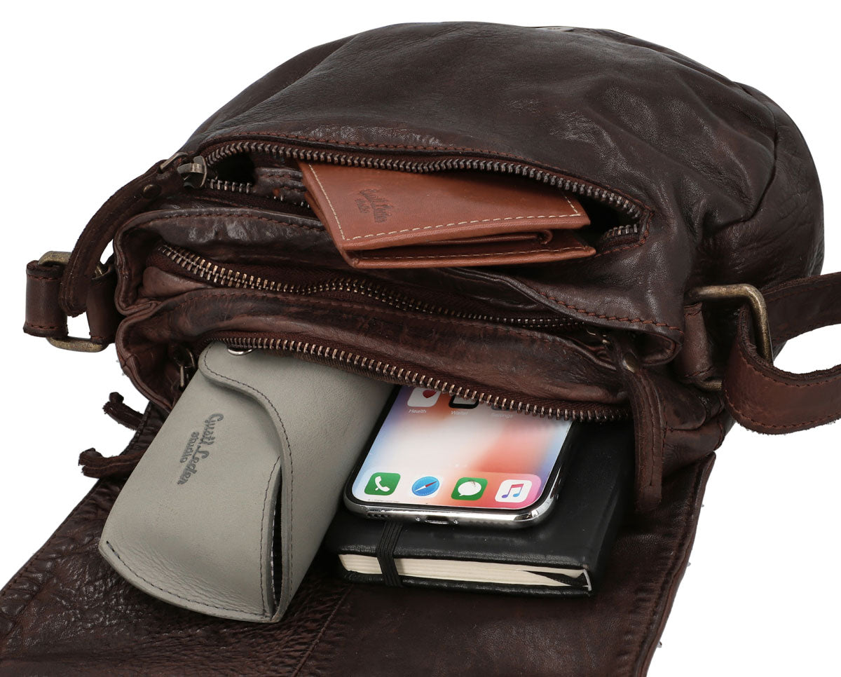 Her compact size lets you move easily through crowds but still has enough space for your essentials. So, your wallet, keys, phone and make-up are kept safe inside. “Stefanie” has two spacious main compartments. She also has an extra zipped pocket on the front for your smaller belongings, like your headphones. Both main compartments are secured using a zip. The whole bag is secured using a thorn-buckle-style magnetic closure. So your belongings are kept safe and sound when you’re on the go. “Stefanie’s” design is completed by the high-quality cowhide leather we’ve used to create her.