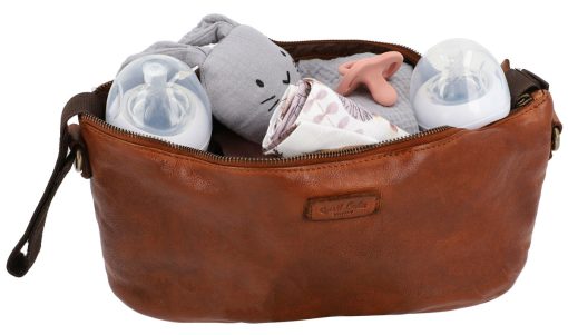 Are you looking for a stylish and practical nappy bag that you can attach to your pram? Then our high-quality brown leather nappy bag is exactly what you’ve been looking for. This elegant bag offers you a smart storage solution.