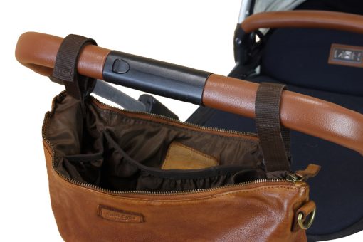Elegant and practical high-quality brown leather nappy bag for your pram