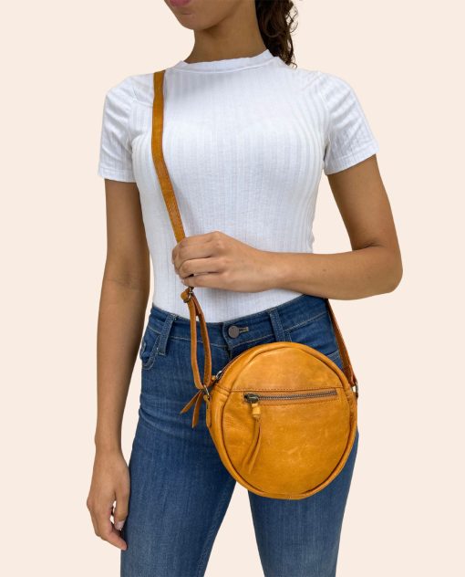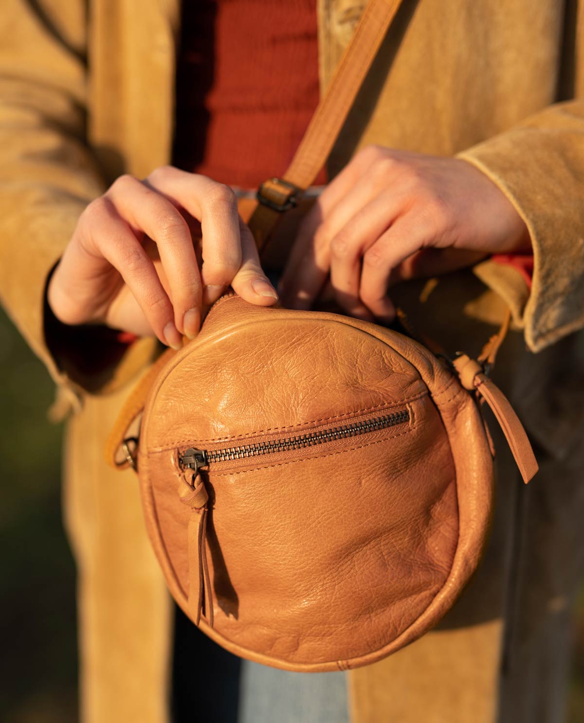 Are you looking for a compact bag that you can use every day? One that’s both casual and has a bit of flair? Then, you’ll love our “Tanja”! This round shoulder bag will win you over with her soft cowhide leather and range of different colours. Thanks to its compact design, this handbag is the perfect everyday accessory and adds a unique retro touch to any outfit.