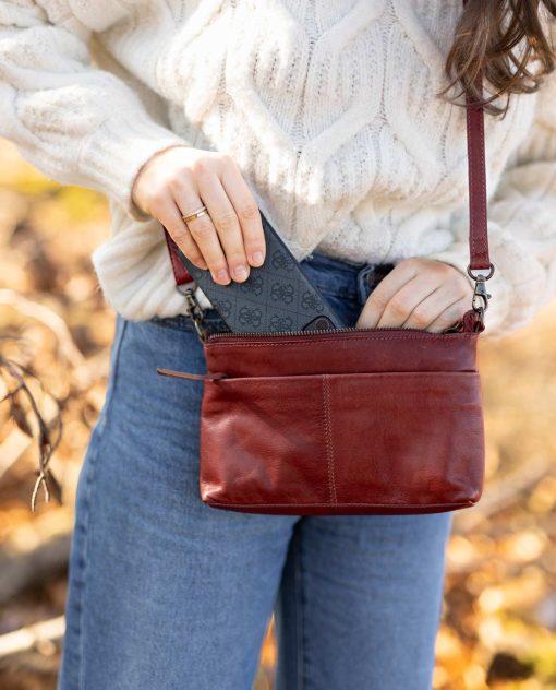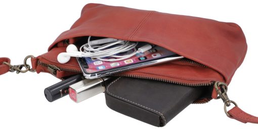 Our spacious handbag “Veronika” is more of a clutch than a shoulder bag. This compact handbag has plenty of space for your belongings in its three compartments. Your things are secured by a sturdy zip. Transform “Veronika” from stylish shoulder bag to elegant clutch in a few seconds by removing the strap. She’s perfect for coffee dates with your friends and exploring the city. You can wear her to the club and dance the night away with “Veronika” knowing you look stylish on the dancefloor. She’s available in different colours. You might even find your favourite colour in our collection. This stunning handbag is made from sturdy cowhide leather that complements any outfit.
