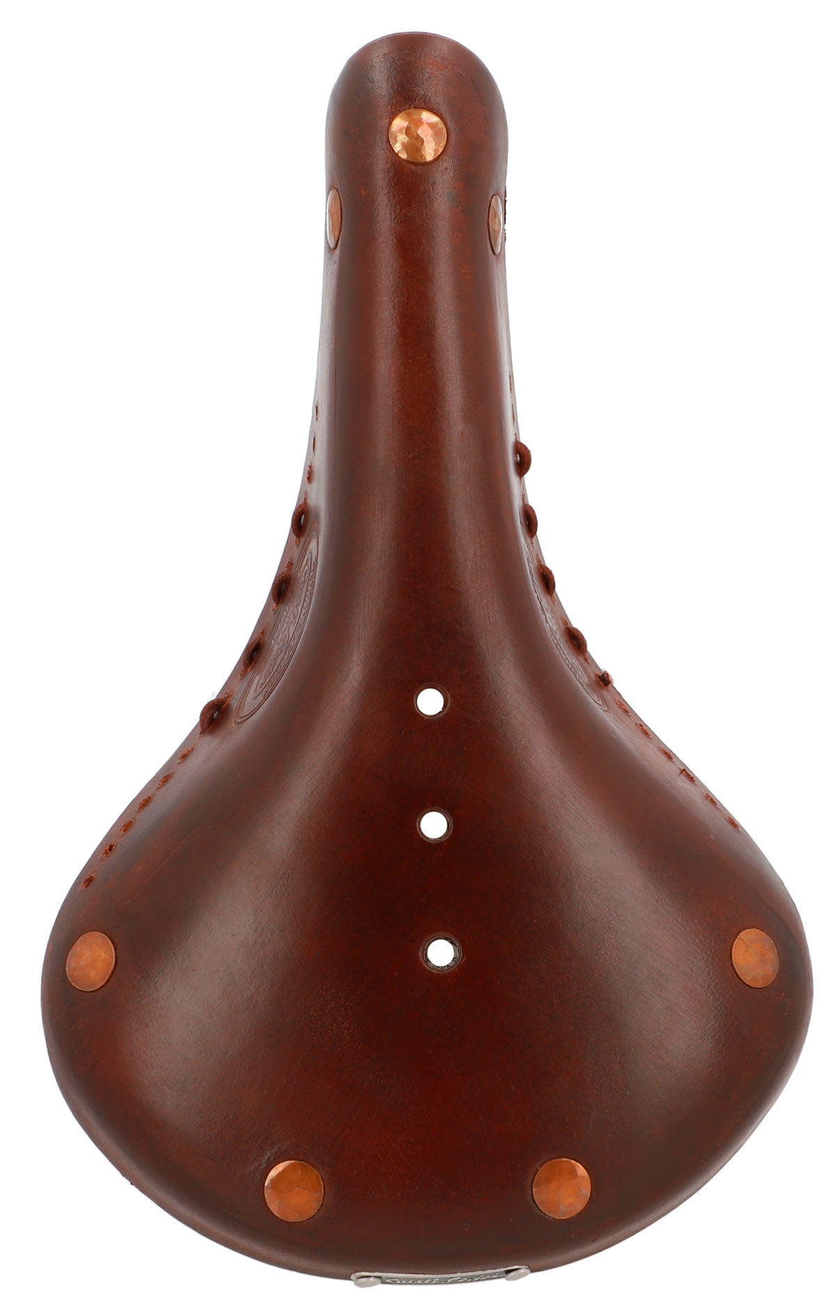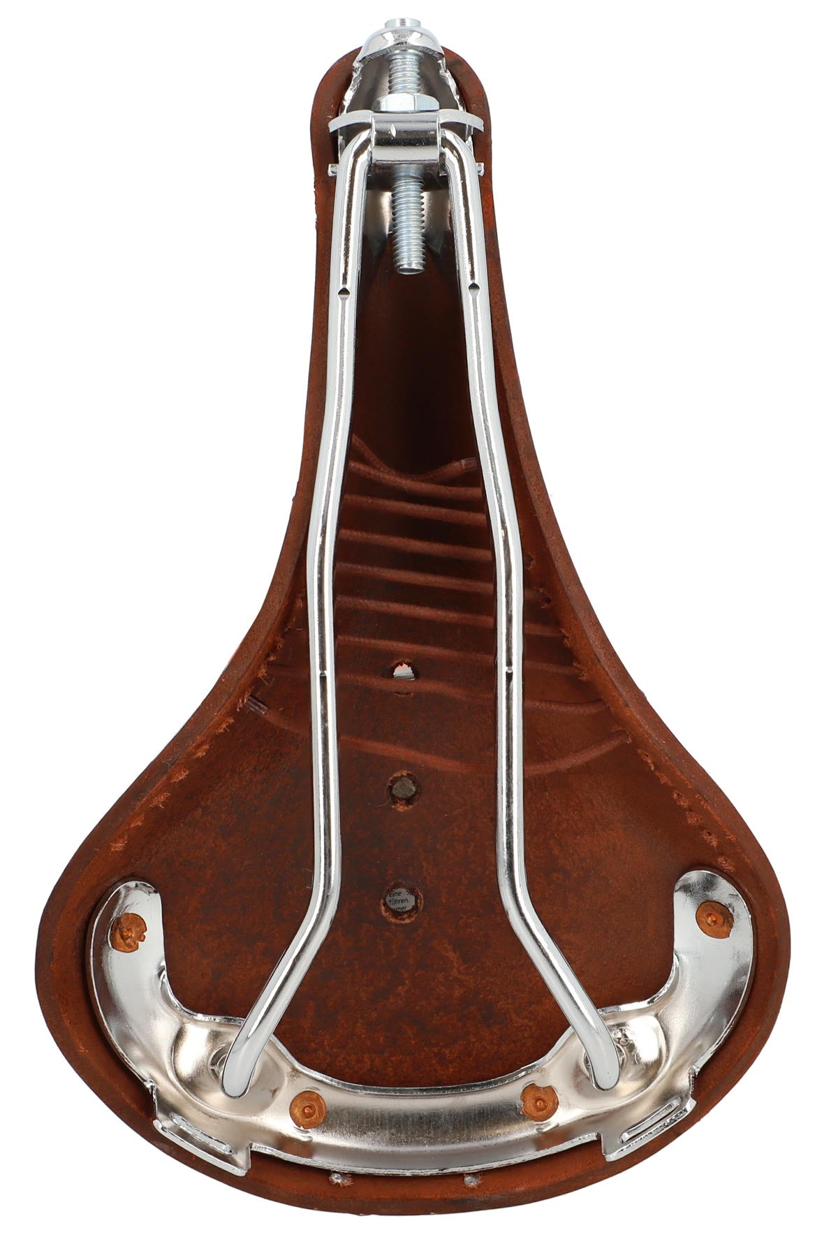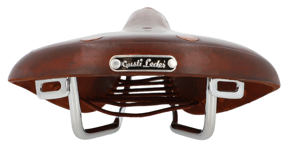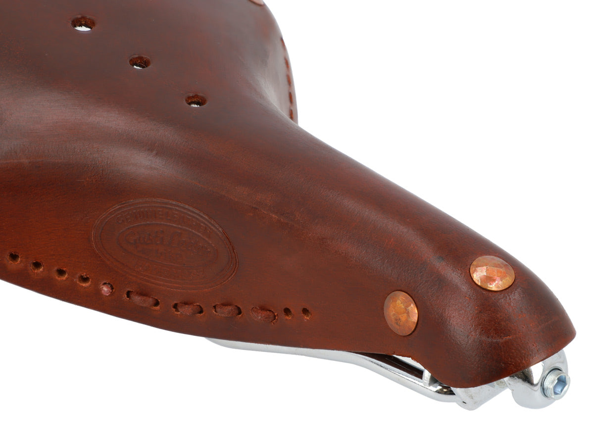 This robust buffalo leather saddle has rivets around the edge, so you can comfortably screw the saddle in and hit the road. “Angelo D.” has eyelets on the back so that you can attach a saddle bag and have even more freedom when you’re out on a bike ride.