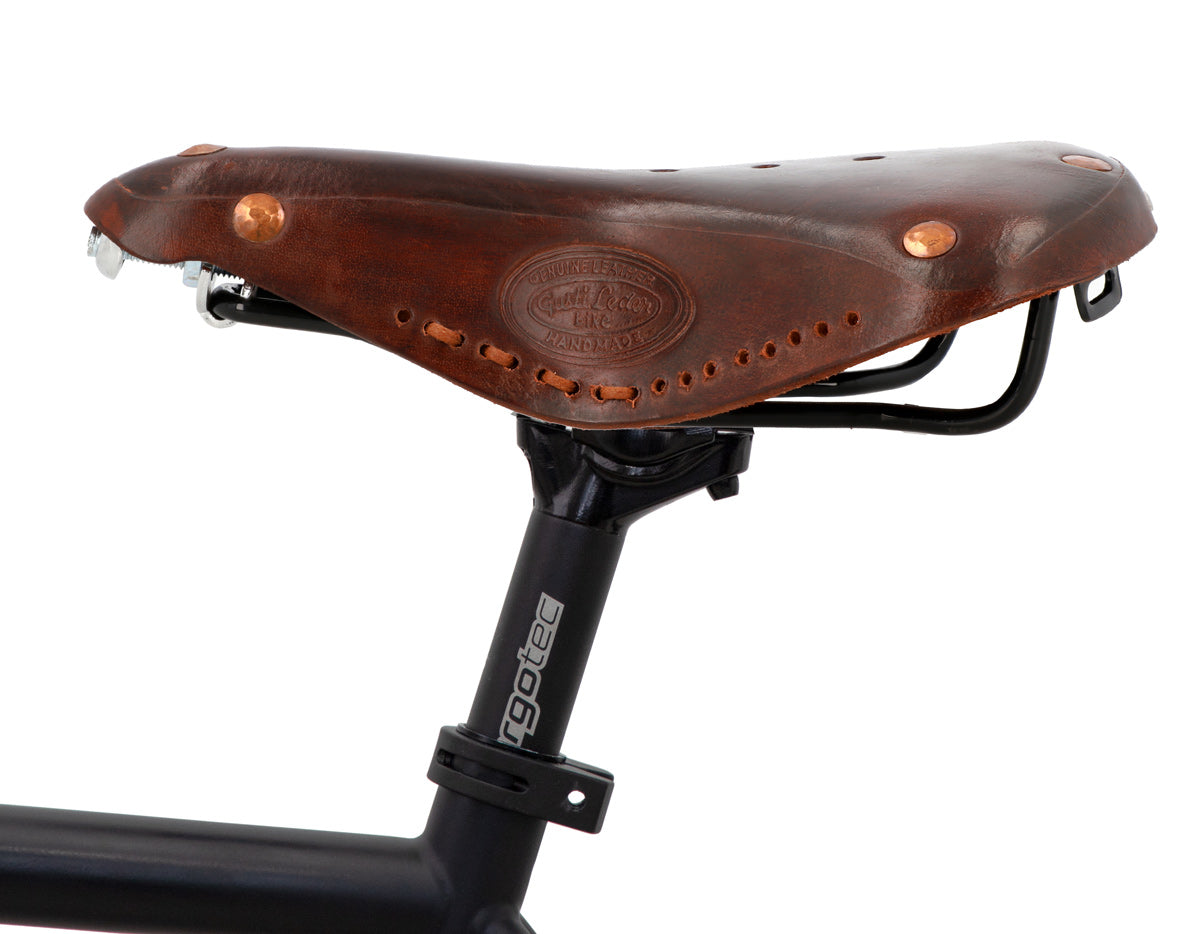 If you’re looking for a leather saddle that looks chic on your Fixie as well as your mum’s Dutch bike, then you can’t go wrong with “Bernard H.”. Thanks to its timeless design and high-quality leather, this saddle doesn’t just look good on your bike, it means you’ll turn heads on every bike ride too.