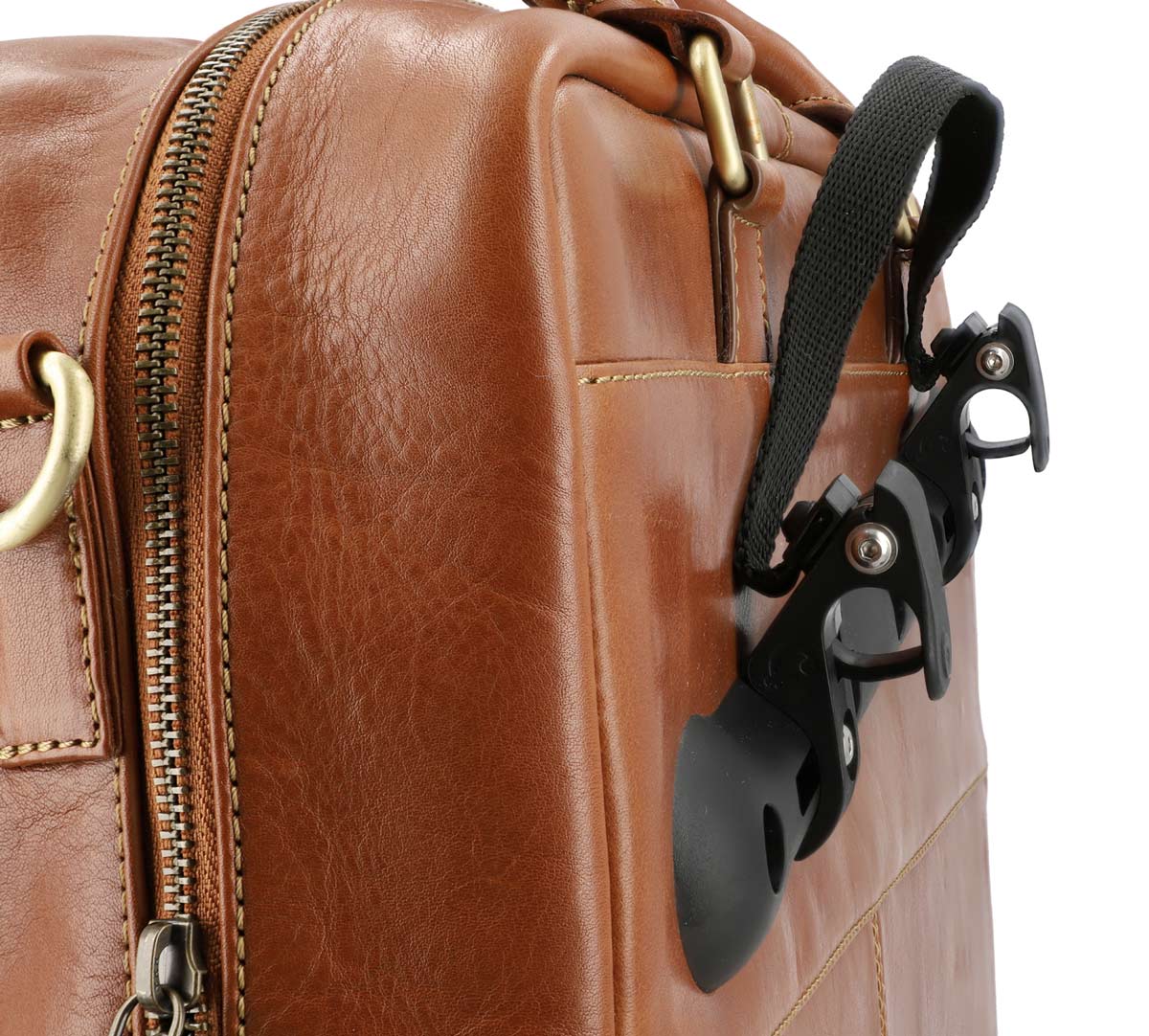 This 2-in-1 solution of functionality and trendy shoulder bag at the same time offers space for all your important belongings: 15-inch notebook, books, A4 documents, and folders fit easily into the main compartment and leave room for other small items. In the trendy vintage look, the bag provides plenty of storage space. Additionally, you have a front side pocket that you can also close with a zipper. This is particularly suitable for essentials that you need ad hoc, such as documents or headphones. “Kurt S.” is rounded off with 2 handles and an adjustable shoulder strap. For your greatest freedom! “Kurt S.” can be easily attached via the included adapter with hooks for your luggage rack – long bike tours or the daily commute to school are no longer in the way!