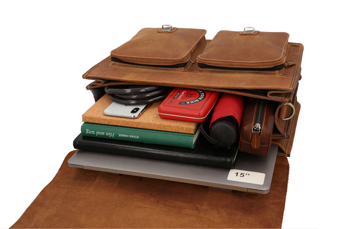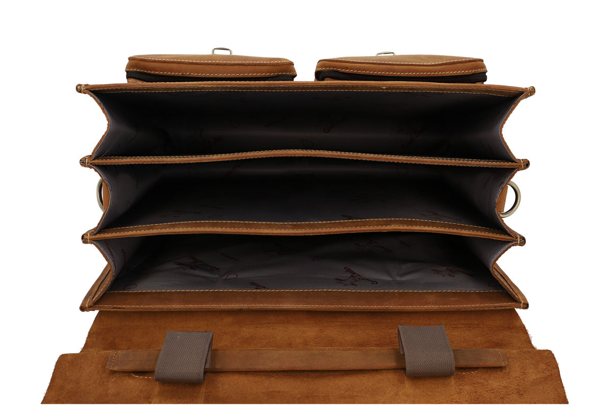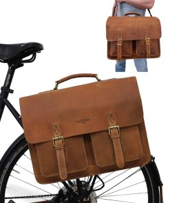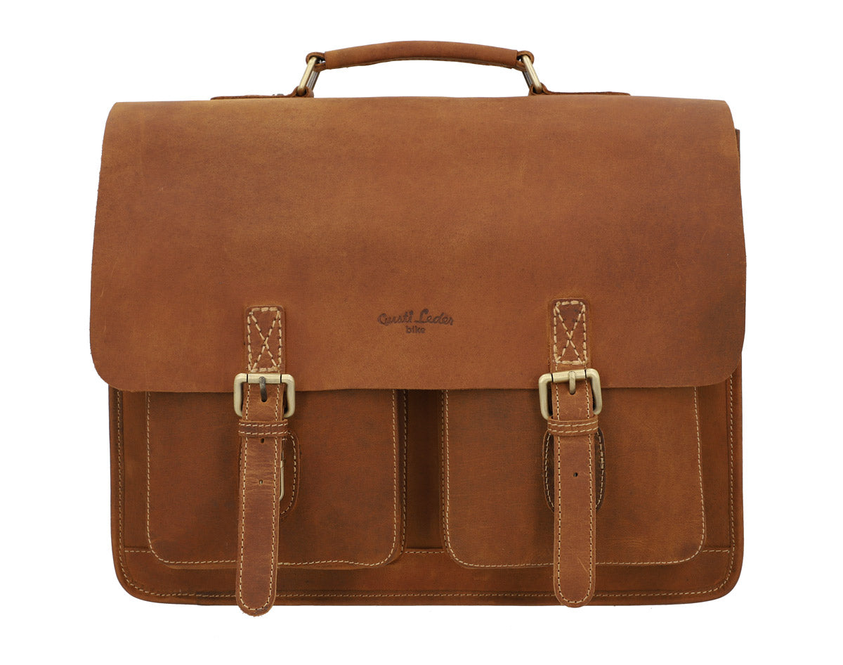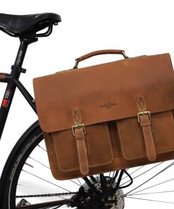 Our briefcase “Marco P.” is incredibly beautiful. This super spacious bag will charm you and turn others green with envy. But that’s not all! “Marco P.” is a true shapeshifter. You can easily mount him onto your pannier bracket, transforming him into a super chic pannier with a bold vintage flair in no time at all. This classic and elegant bag has lots of pockets and is super functional, giving you optimum freedom and flexibility when cycling to the office or in your free time. No matter if you’re going to uni, your next business meeting, walking or on your bike, “Marco P.” is a showstopper on any terrain.