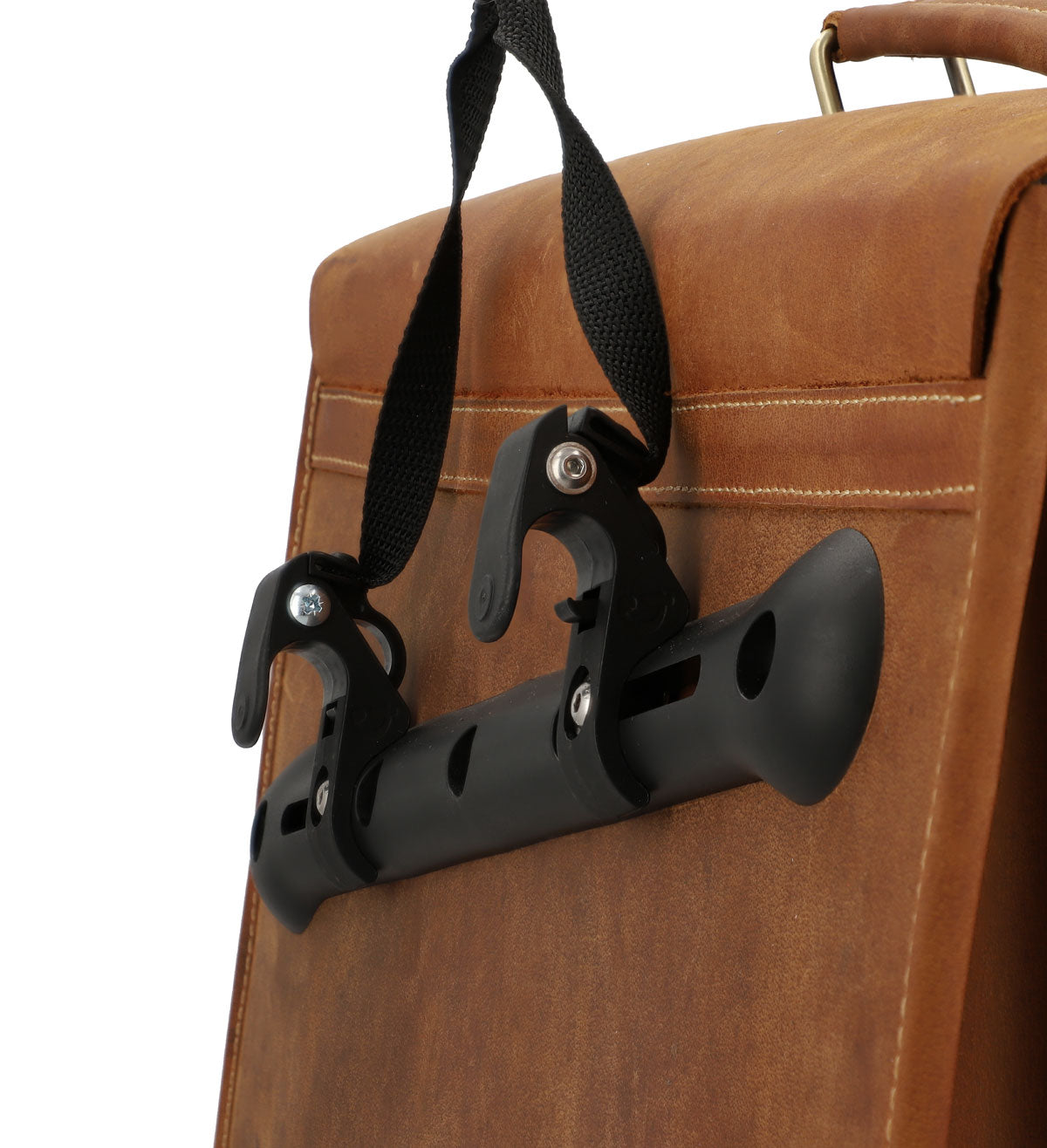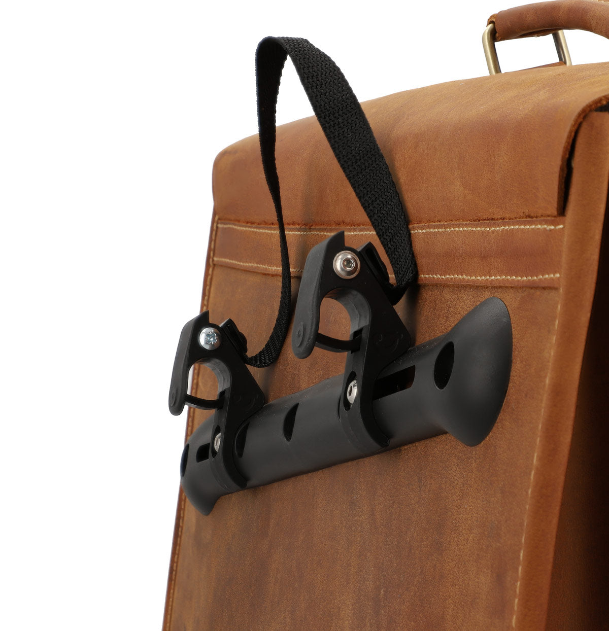 We’ve spared no expense when designing “Marco P.”. This 30-litre bag has a spacious main compartment, divided into 3 sections, and is made of high-quality processed buffalo leather. There’s plenty of space for your 15-inch laptop, different notepads, your organiser, stationery, water bottle, snacks, umbrella, and more. “Marco P.” has 2 side pockets that are secured using a zip. The perfect place to keep your smaller belongings, like your headphones. Secure your things inside “Marco P.” using the thorn-buckle-style metal push lock. The fixed mounting system completes “Marco P.’s” design. So you can mount him on your bike in no time at all.