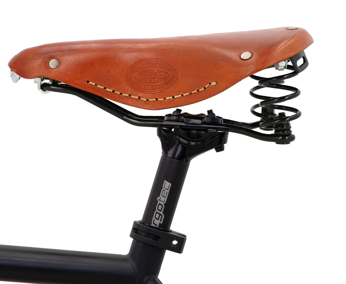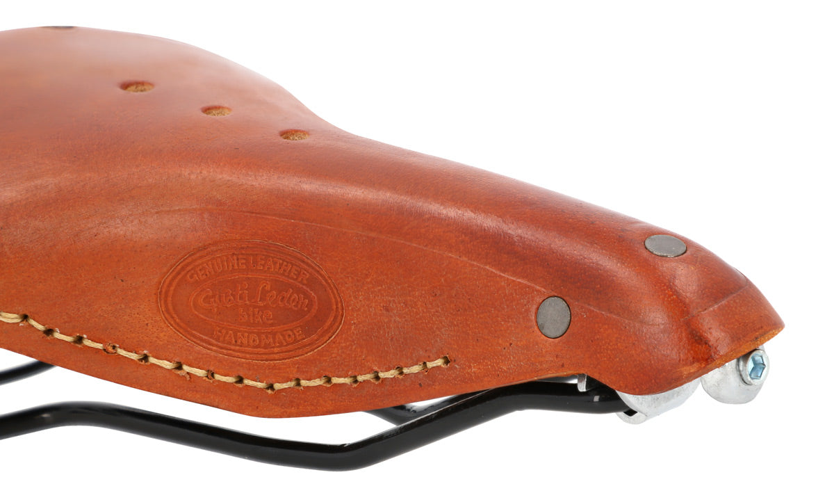 Are you looking for an everyday bike saddle that always looks good? A multifunctional saddle that’ll turn others green with envy? “Michael M.” is super versatile, he looks great on your Fixie, as well as your e-bike. This timeless high-quality buffalo leather saddle doesn’t just help your bike shine, it adds a unique stylish touch to your look thanks to the metal rivets. You can attach your saddle bag to the saddle rails, so you’ve got even more places to keep your essentials when you’re out on the road.