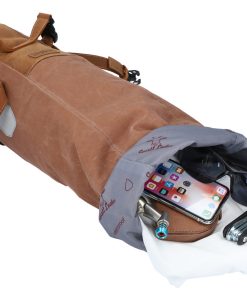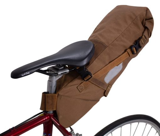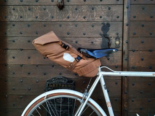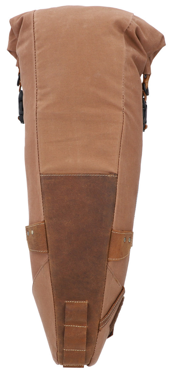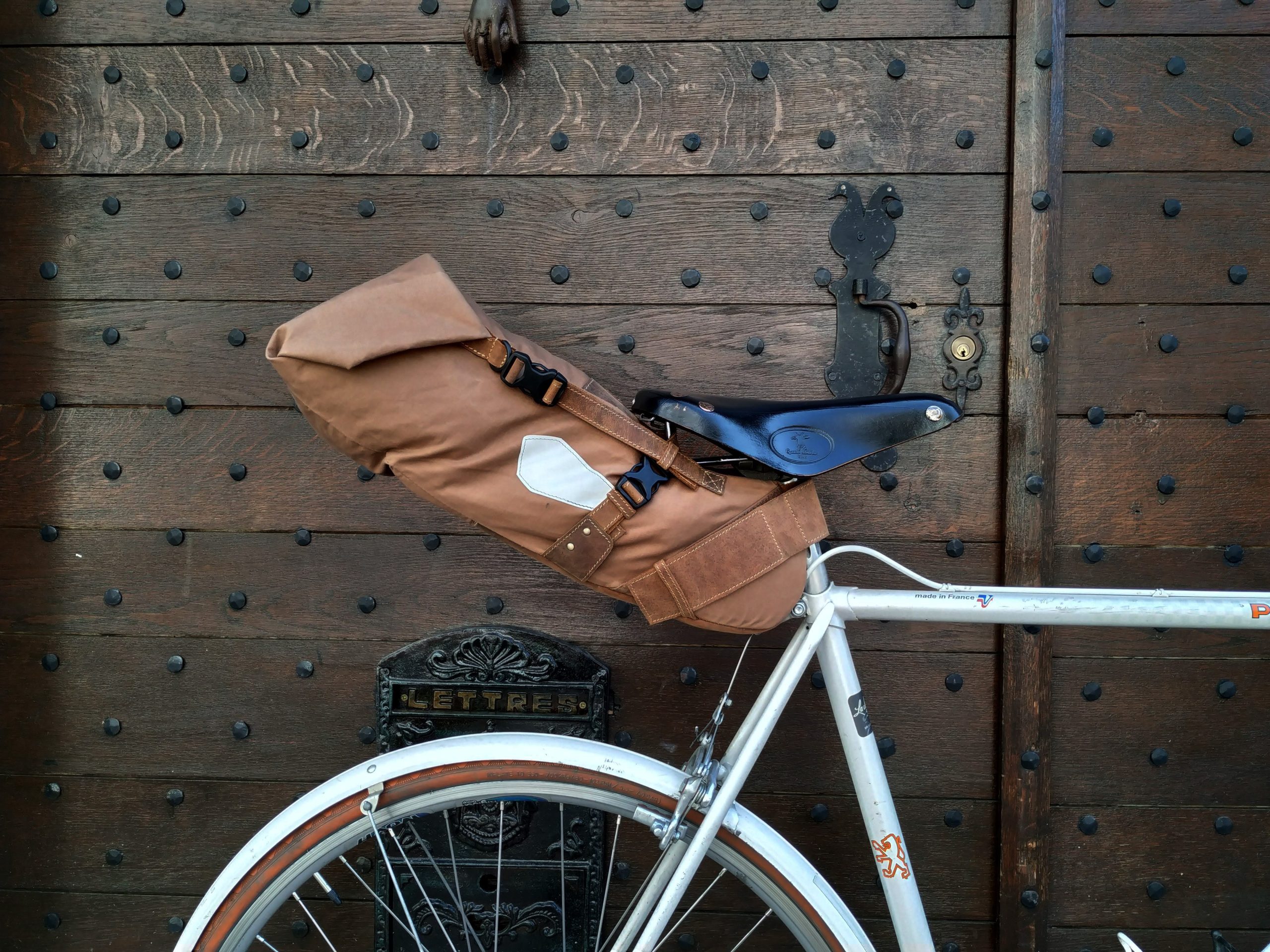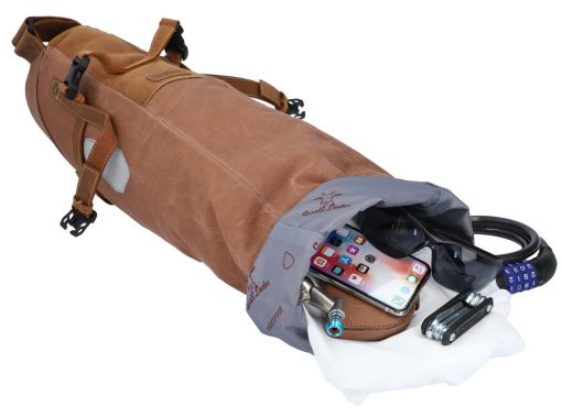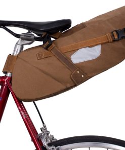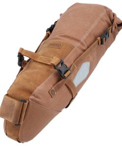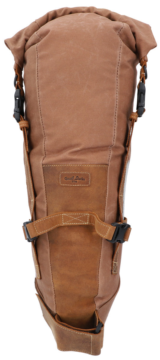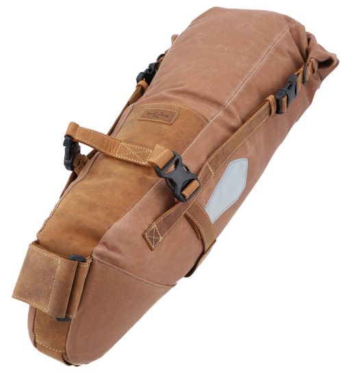 Thanks to “Romain M’s” practical roll-top, your belongings stay securely stored and easily accessible at all times. The bag is attaches securely around the saddle stem using a wide leather strap with velcro, while additional leather straps with buckles ensure that the bag is securely attached under your saddle. Its vintage design combines functionality with a unique style that enhances every ride.